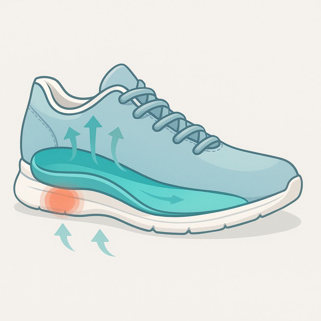 Une semelle adaptée absorbe les chocs, répartit la pression et soutient la voûte plantaire pour un confort immédiat.